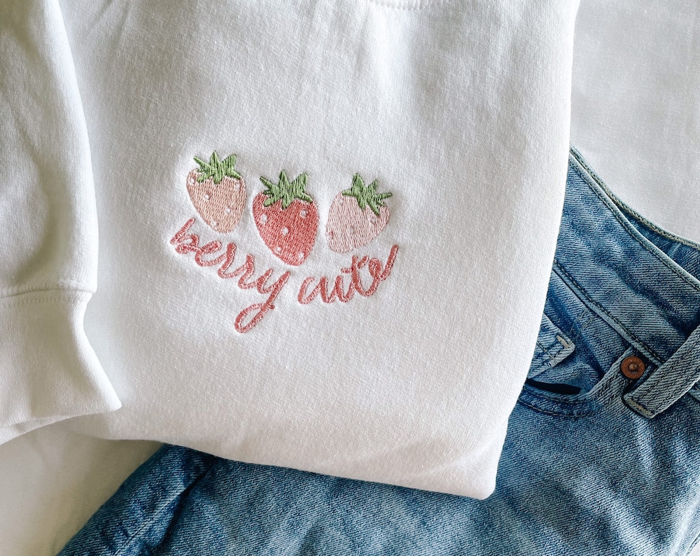 Berry Cute strawberry Embroidered Crewneck Sweatshirt